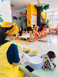 Chiều hôm qua, không gian tại Mầm non FBK bỗng trở nên thật ấm cúng và thân thương, ngập tràn trong hương thơm của gạo dẻo và vừng rang. Đó là khi các "đầu bếp nhí" có một buổi học Cooking đặc biệt với món "Cơm nắm muối vừng" thật vui và đong đầy ý nghĩa.